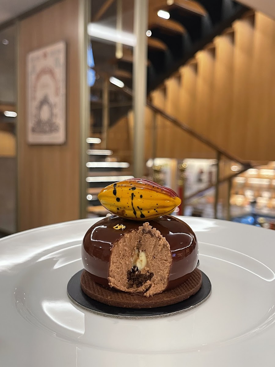 Chocolate heaven!!!! Here you can get any kind of chocolate and base on chocolate drinks. One building full of chocolate . Drunk by chocolate . Food was good but standard. Surprisingly the vegetarian menu (Spring Rolls) was yummy. Signature Chocolate Drink was good, no added sugar, more like real dark chocolate flavor not some essence. Salad okay. Burger quite huge and taste okay too. The cakes all look tempting. What we try is delicious with complex taste. The place is very comfortable for dining and chit chat with friends. Staff was super friendly, good knowledge of the products and willing to explain one by one especially the one work at cake display. I think we ask almost all the cake .