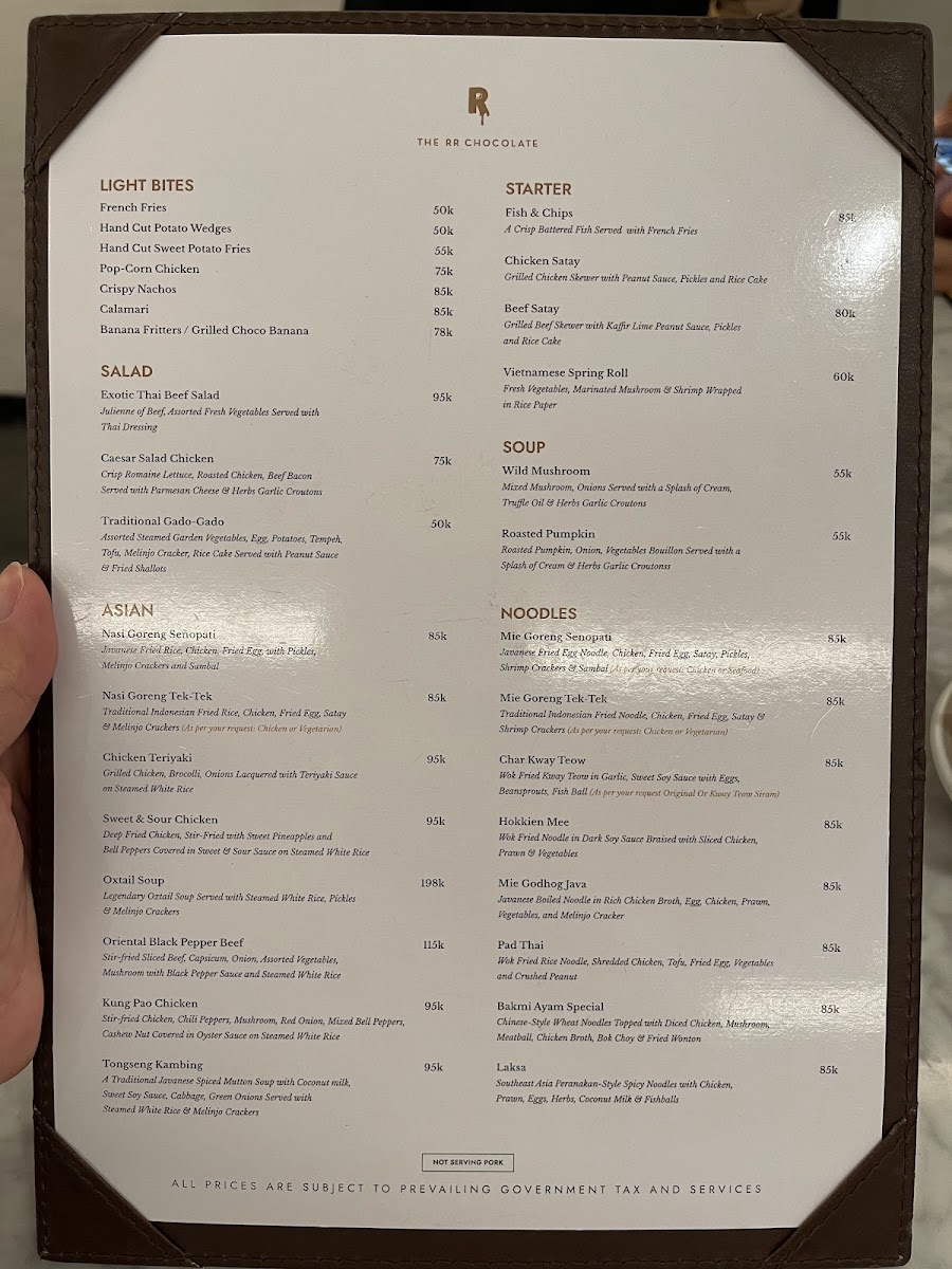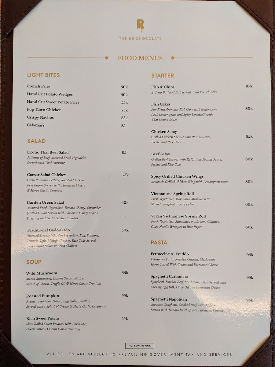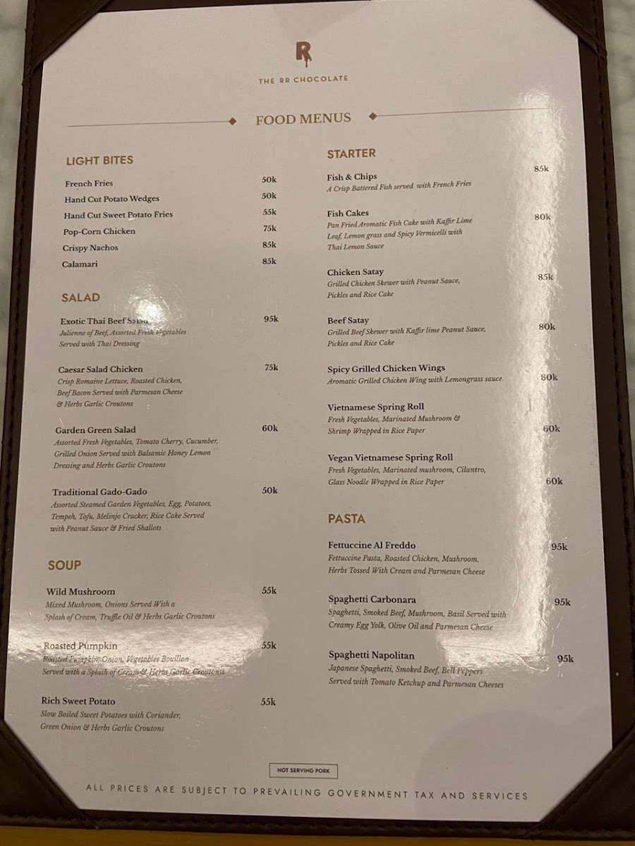 The RR Chocolate - Senopati Menu