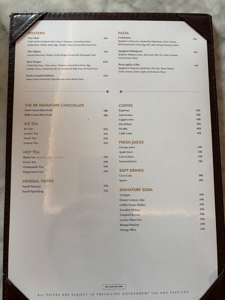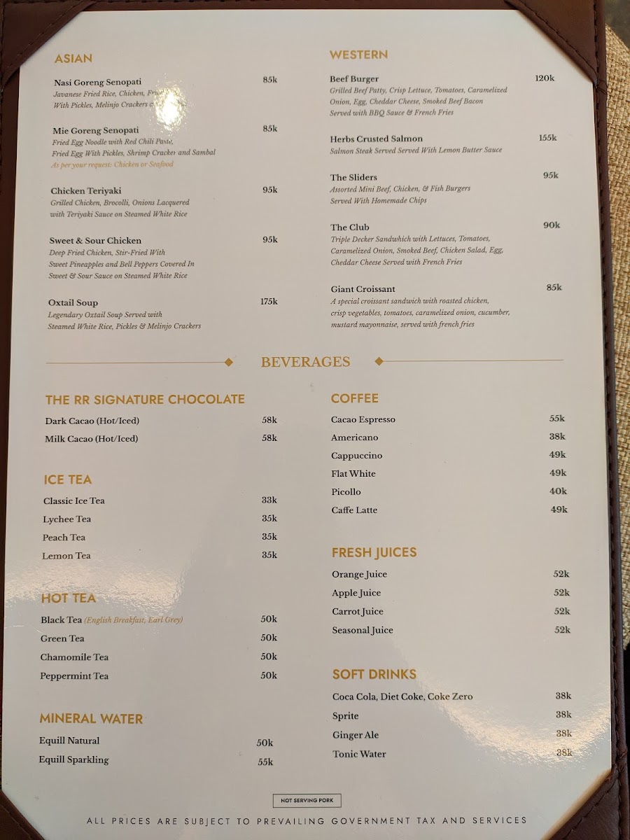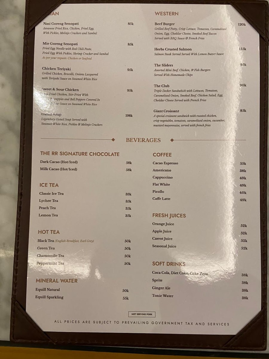 The RR Chocolate - Senopati Menu